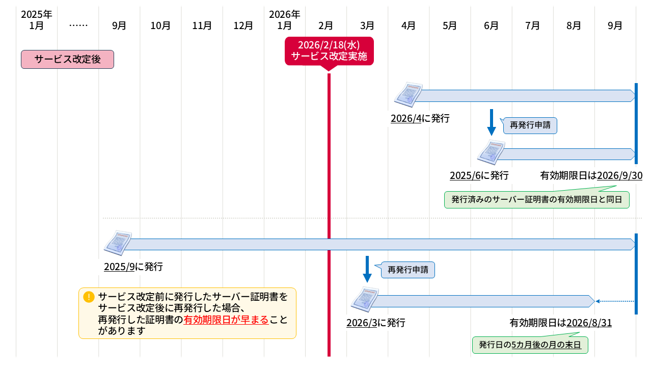 なお、サービス改定までに発行された証明書の有効期間(有効期限日)は変わりません。